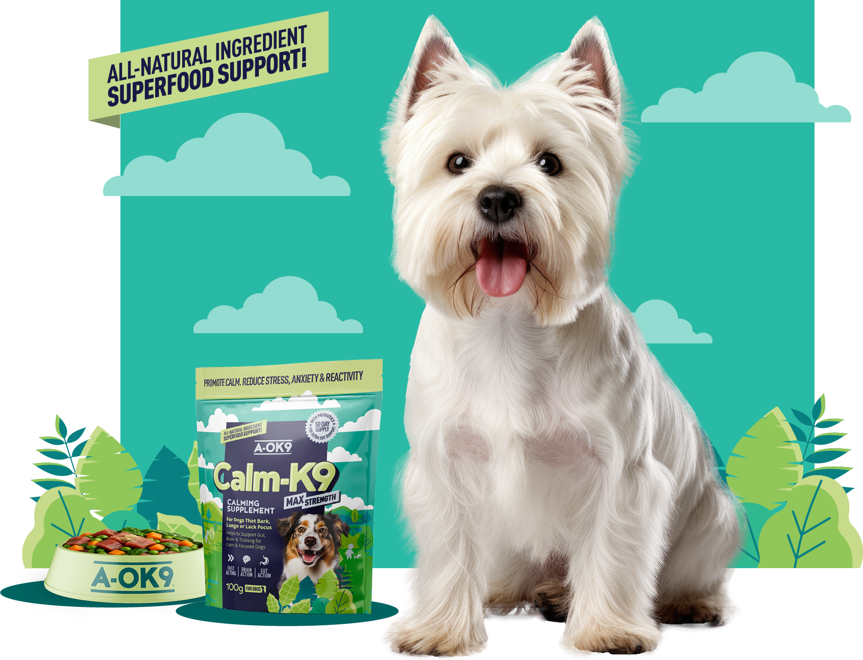 A-OK9 delivers expert-formulated supplements using only high-quality, active ingredients with no fillers, binders or unnecessary extras. While many dog health products use generic formulas or low-impact doses, our powders are designed by vets, behaviourists and nutritionists to target real-life issues like reactivity, digestion, immunity and dental health. Every product is easy to use, backed by science and made to support long-term wellbeing.