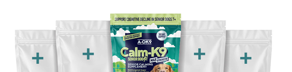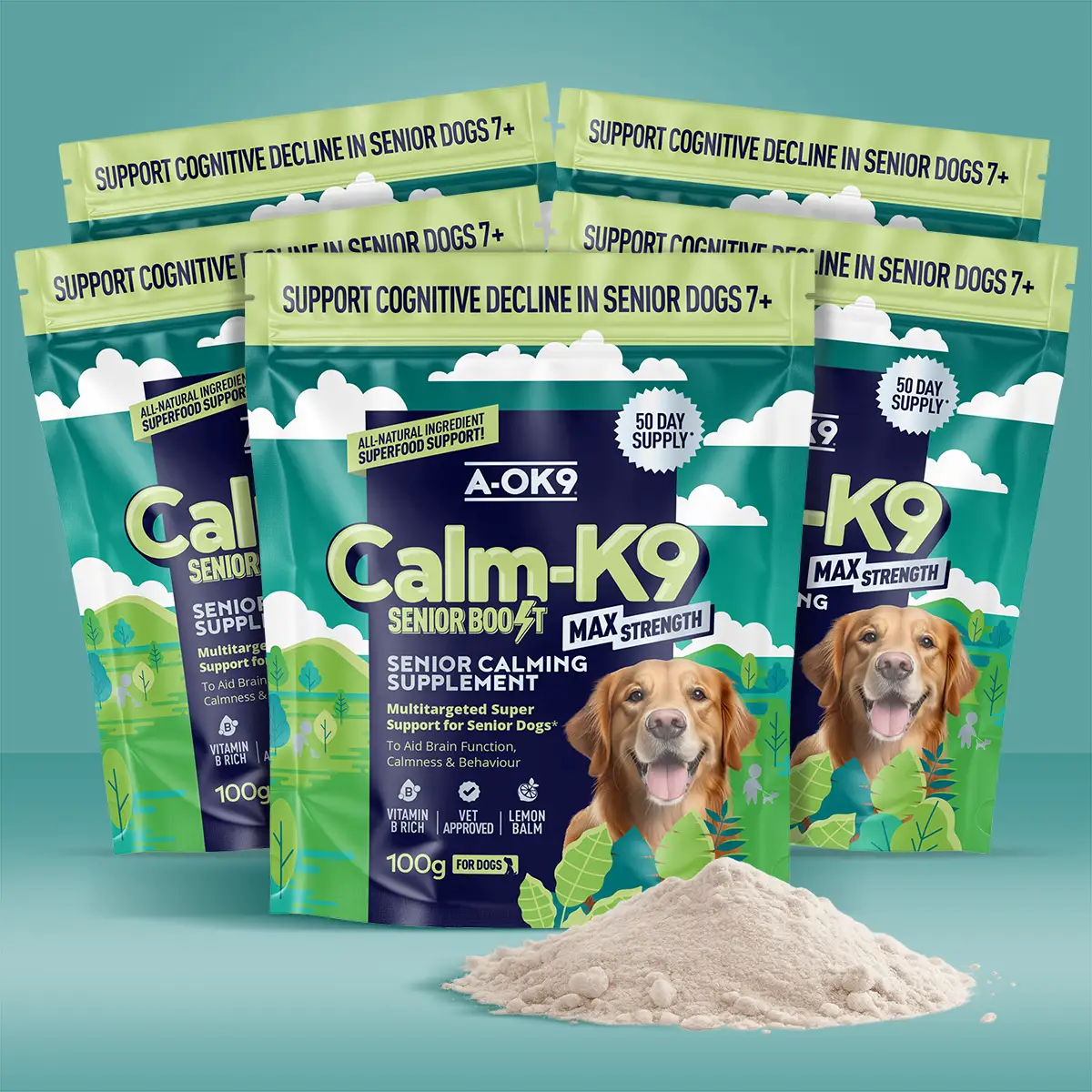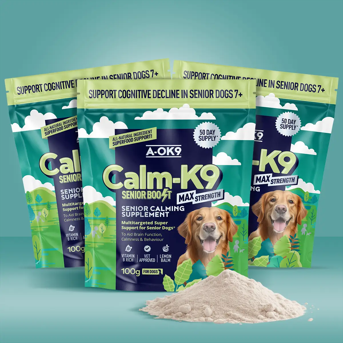 Support your senior dog's brain & gut health with Calm-K9 Senior Boost. Our natural supplement reduces anxiety, enhances cognitive function & improves vitality.