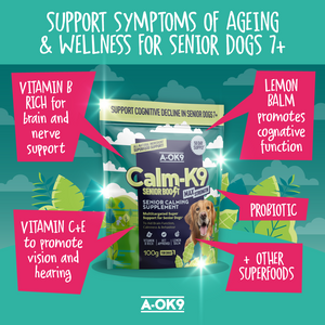 Calm-K9 Senior Boost Max Strength is specially formulated to support emotional balance, brain health, and gut harmony in older dogs, where age-related changes can make calm behaviour and mental clarity more challenging.
