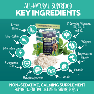 Lemon balm, a key ingredient in Calm-K9 Senior Boost, has been shown to improve cognitive function and reduce agitation associated with Alzheimer’s disease and cognitive decline in humans [4,5]. Studies have also indicated that lemon balm can enhance cognitive performance and mood in healthy, young individuals [6].