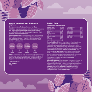 +We’ve produced Prime-K9 Max Strength as a powder supplement so it can easily be added to your dog’s daily food. Simply measure and mix! We love to spread ours on K9-Calm Mats for an extra enriching boost.