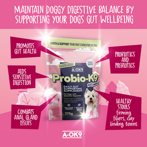 A healthy gut is essential for overall health, and that's why our team of vets and nutritionists developed Probio-K9, a probiotic supplement loaded with live cultures to help restore balance in your dog's digestive system.